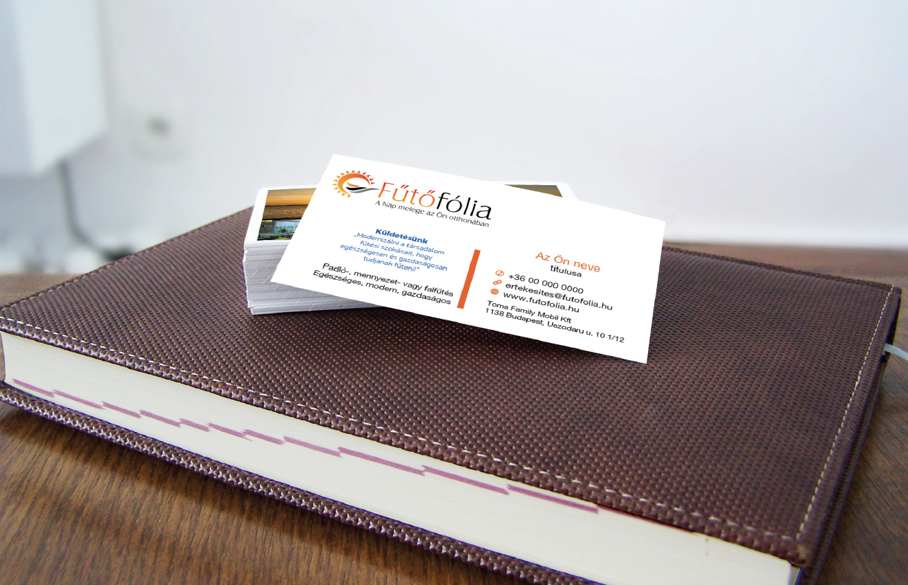 Fűtőfólia névjegykártya saját elérhetőséggel, az egységes megjelenés érdekében.